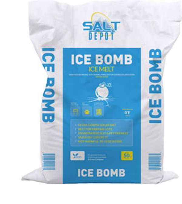 Ice Bomb is a natural 3% blend ice melt featuring extra-coarse grain crystals designed for maximum coverage and efficient melting. This environmentally conscious formula provides reliable deicing performance while minimizing environmental impact.