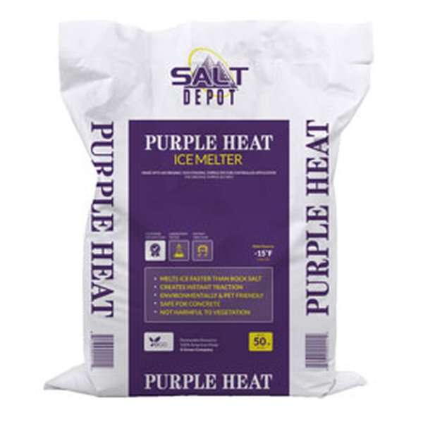 Purple Heat is an 8% Magnesium Chloride blend ice melt offering superior performance with reduced environmental impact. This versatile formulation is available in multiple package sizes and serves as the base for our LEED-compliant Viper Melt product.